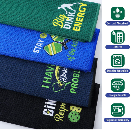 Tôl pickleball brawddegol – Tôl gwaith microffibr rhaglennol o ansawdd uchel yn cynnwys broderi logo clir neu argraffiad llawn liwiau bywiog. Uchelgylch a thôl sydd yn sychu'n gyntaen ac yn ychydig o bwysau. Addas i glwbau, cystadlaethau a masnach. Gall cyfaddasu OEM gael ei gynnig.